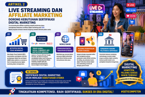 Live streaming dan affiliate marketing menjadi pendorong utama meningkatnya kebutuhan sertifikasi digital marketing pada 2026 seiring perubahan pola pemasaran berbasis interaksi langsung. Model ini semakin diminati pelaku usaha karena mampu meningkatkan konversi penjualan secara real time.
